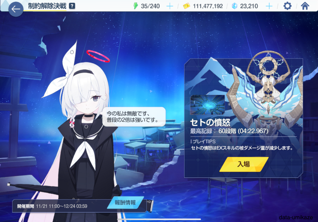 2024/11/21~2024/12/24で開催されているセトの憤怒について、期間ギリギリに取り組むことに。