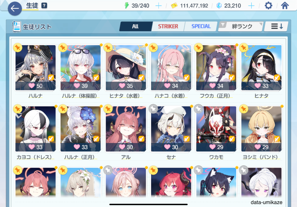 気に入っている生徒を星5にして好感度の上限を取り払う運用が常だったが、最近は強い子もしっかり育てないといけないなと感じている。
