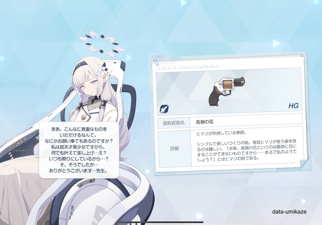 ・ブルアカで初めて参加したイベントが2.5周年記念の「隠されし遺産を求めて」だったため、ウイとヒナタのコンビに思い入れがある。のちに復刻イベントで読んだ2人のメインイベント「どたばたシスターと古書館の魔術師」も非常に刺さった。