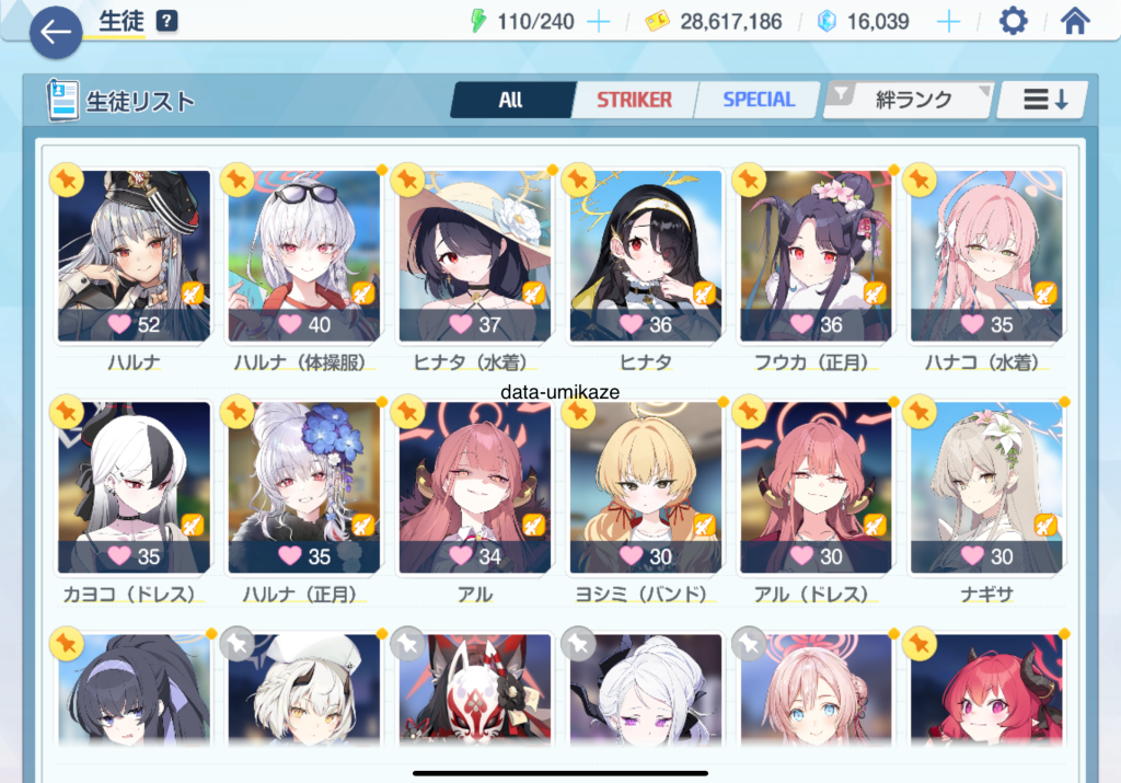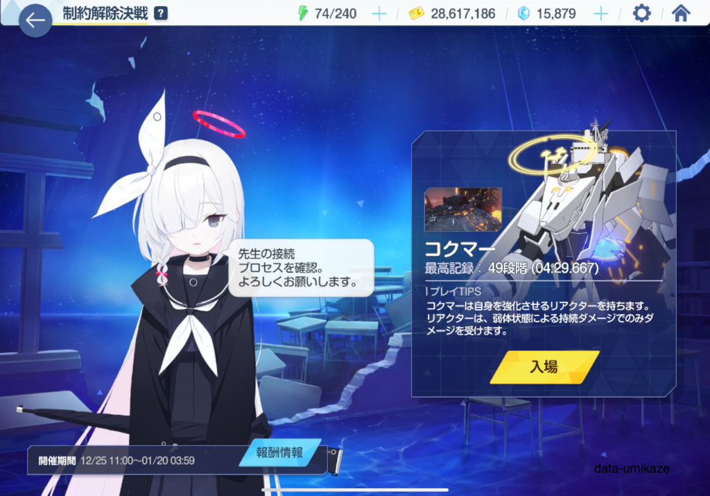 対コクマーに有効な生徒を持っておらず、49段もギリギリだったので50段目以降は諦めた。レイジョか自転車シロコが欲しい。