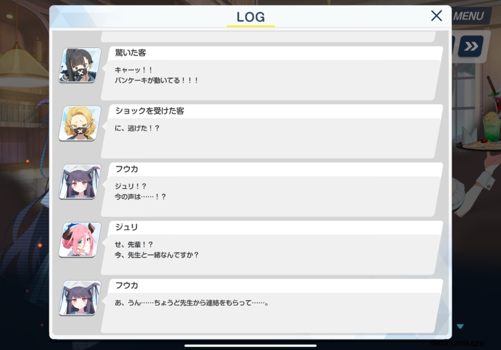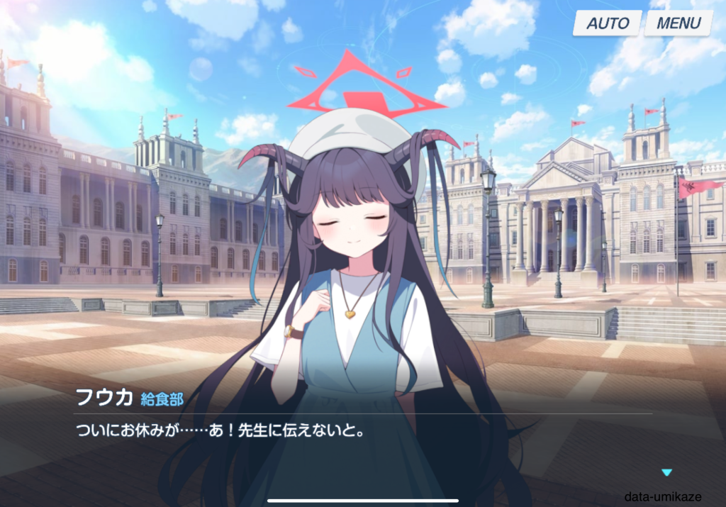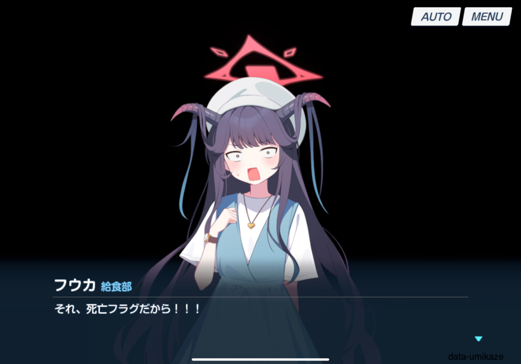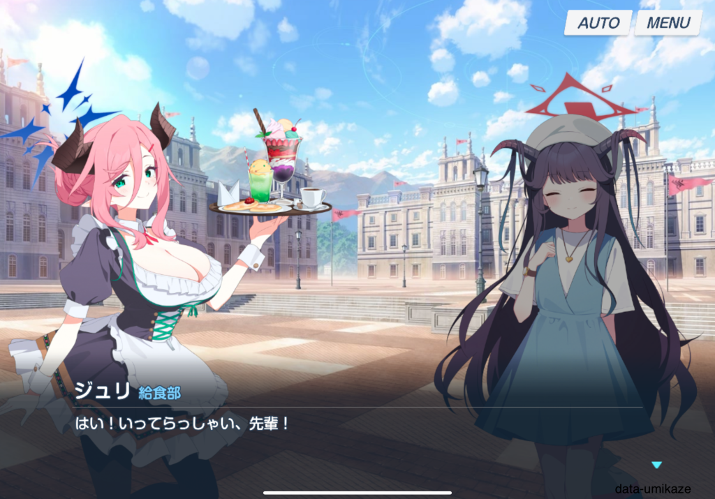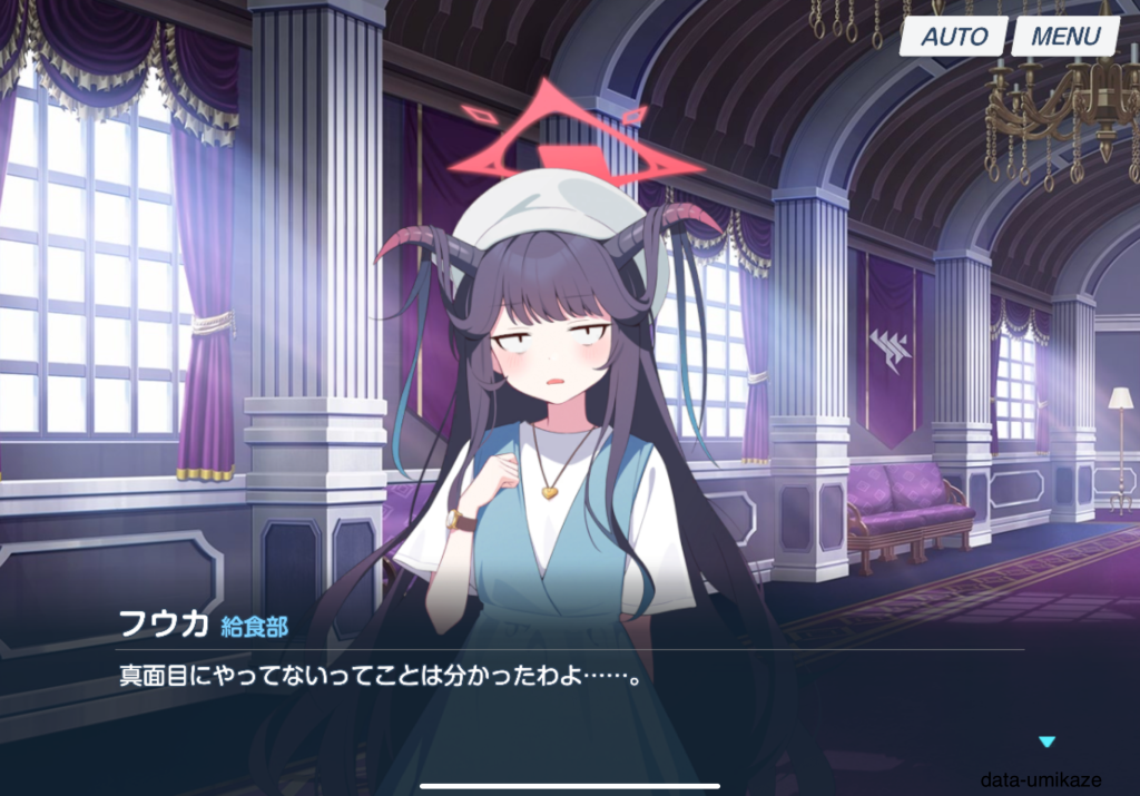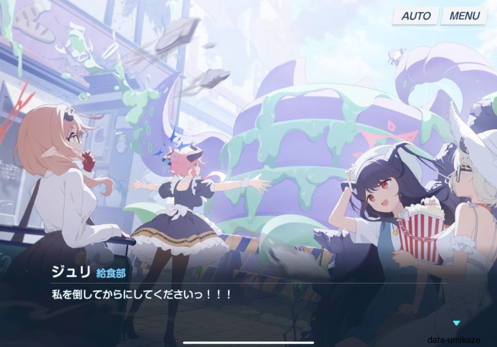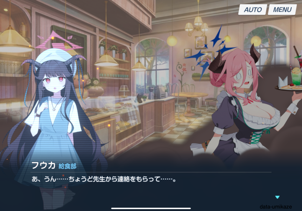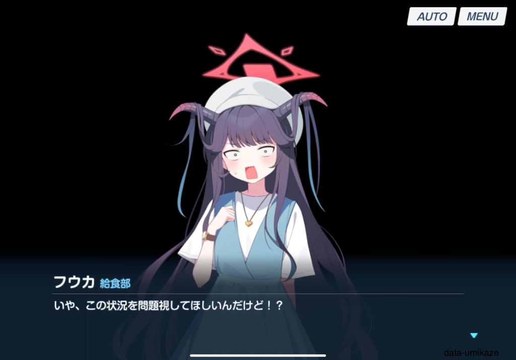 またフウカの休みを邪魔しないように奮闘するジュリと、そんなジュリに助けられているフウカの交流もあった。両者ともにキヴォトスでは考えられないくらい治安の良い思考回路を持っているので、給食部はゲヘナでもトップクラスに平和な部活だろう。時折パンちゃんが生成されることを除けばだが。