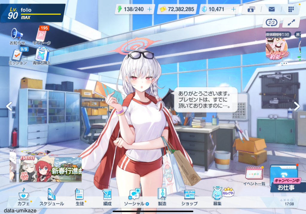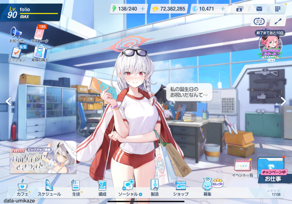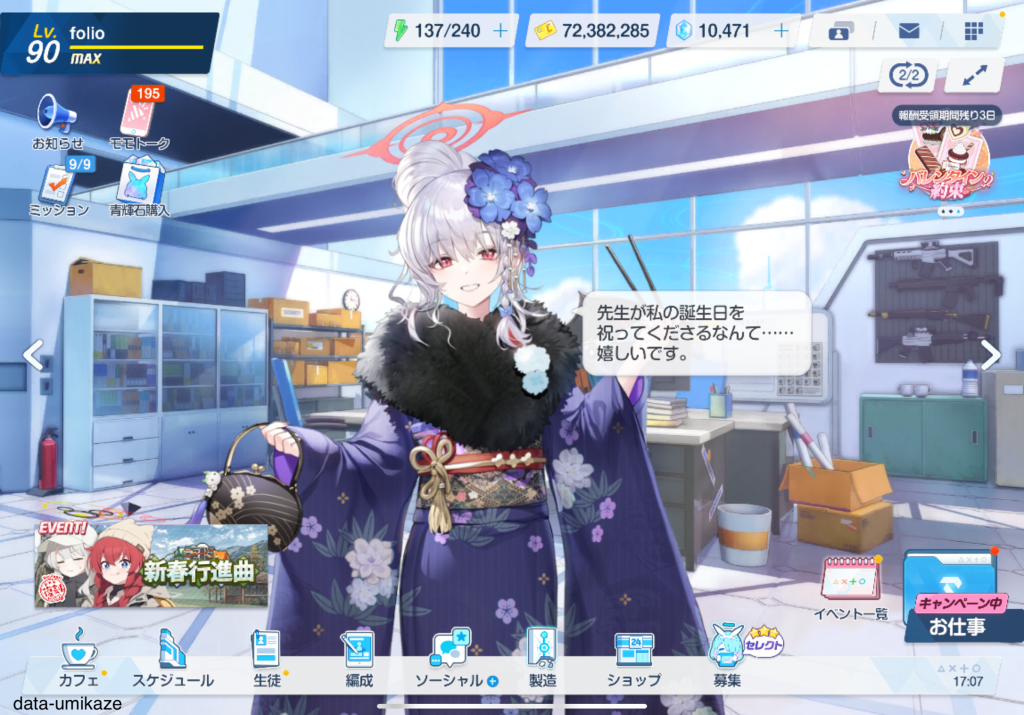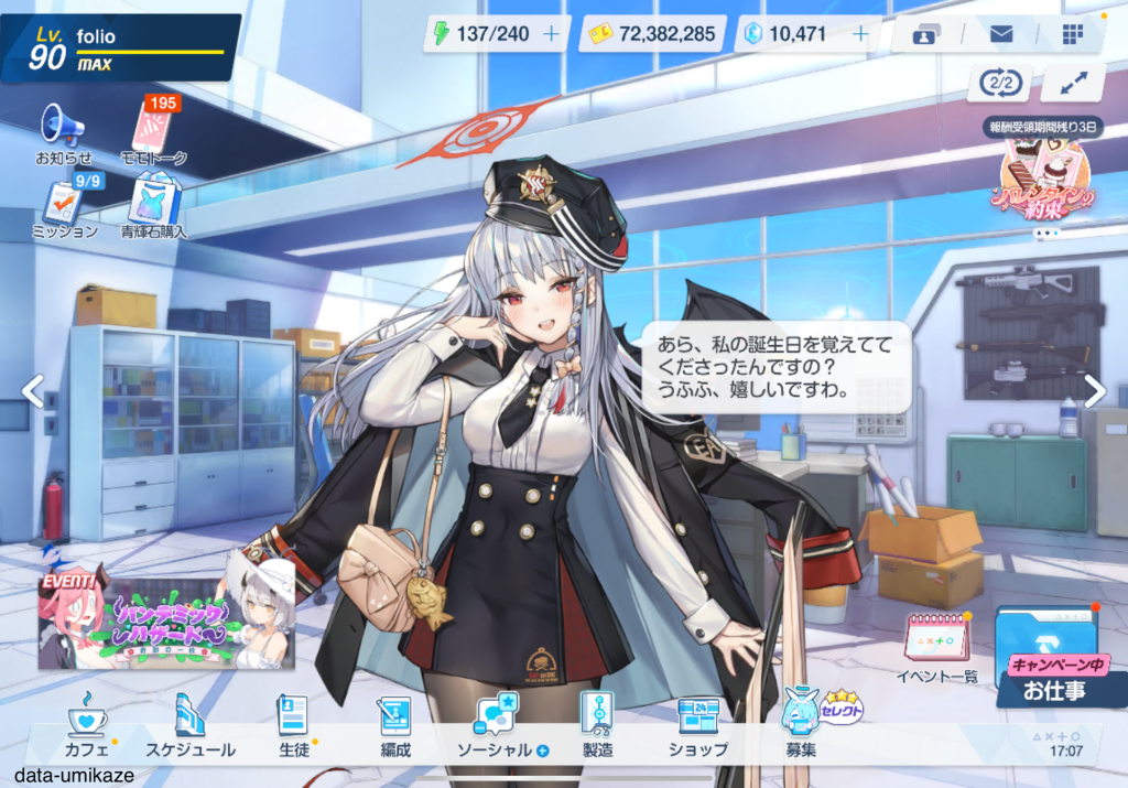 今週3/1(土)はハルナの誕生日。誕生日限定のボイスもあるので聞いておこう。
