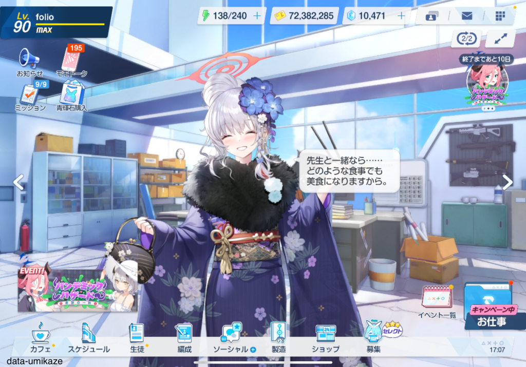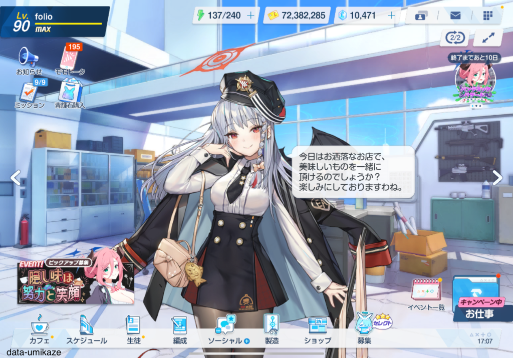 フウカは通常衣装、正月衣装ともに絆ストーリーが非常に好みなのだが、この様子だと来年以降に私服バージョンが実装される時が楽しみだ。