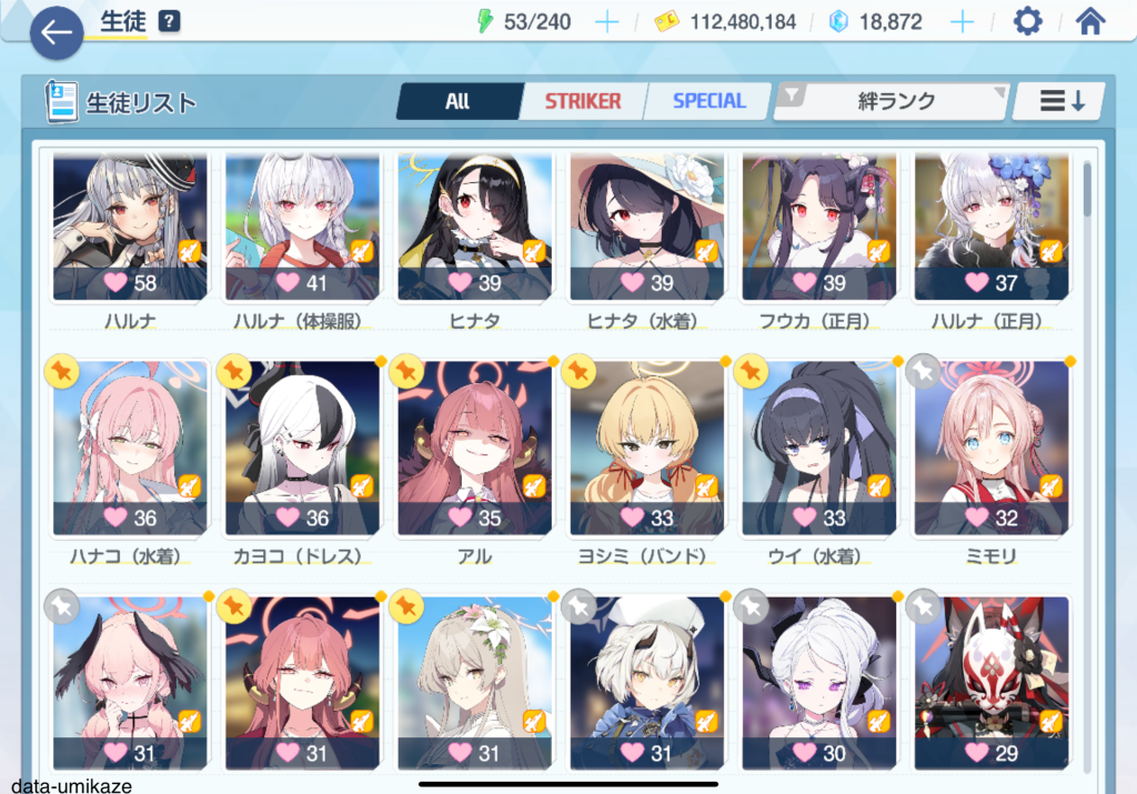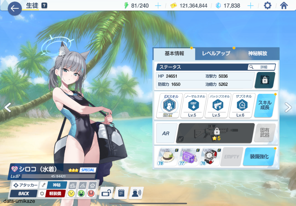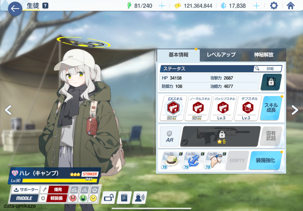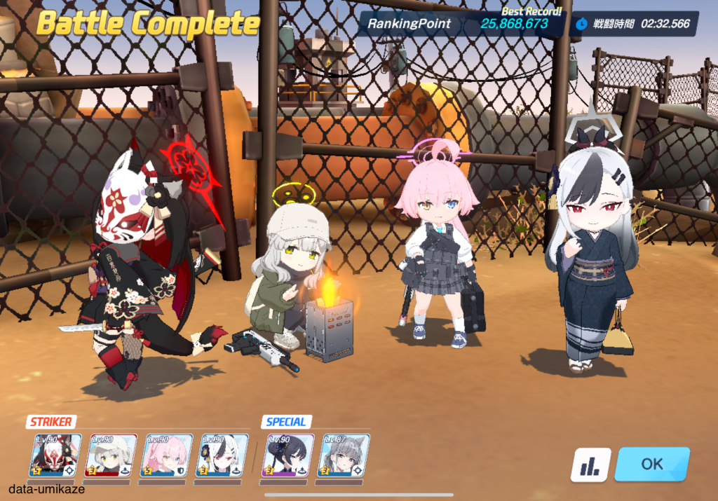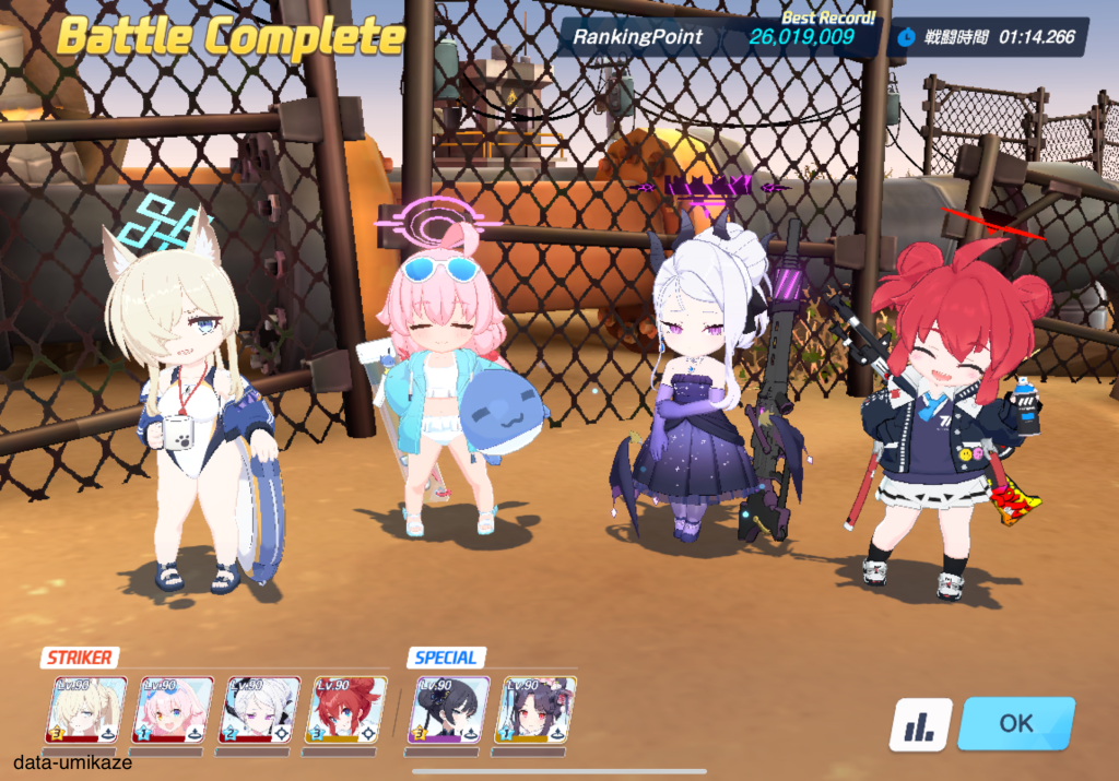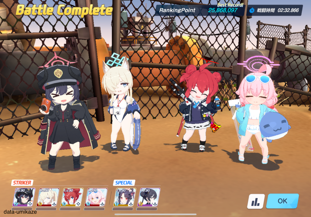 今回からは防御デバフを水着カンナから水着シロコに、攻撃バフをヒマリからキャンプハレに変更している。両者ともに屋外戦の適性が高いため、今回の戦闘条件に合わせた形だ。