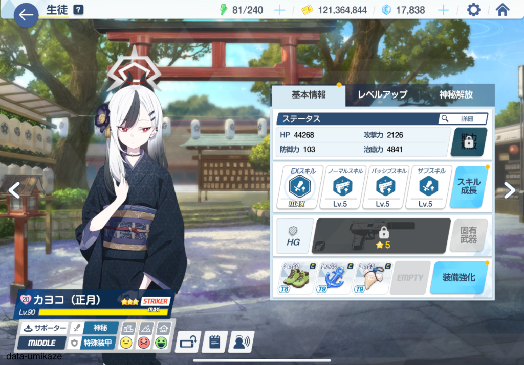 ハード2倍などで神名文字が溜まってきたので、チセ、フィーナ、シミコの3名を星5にした。