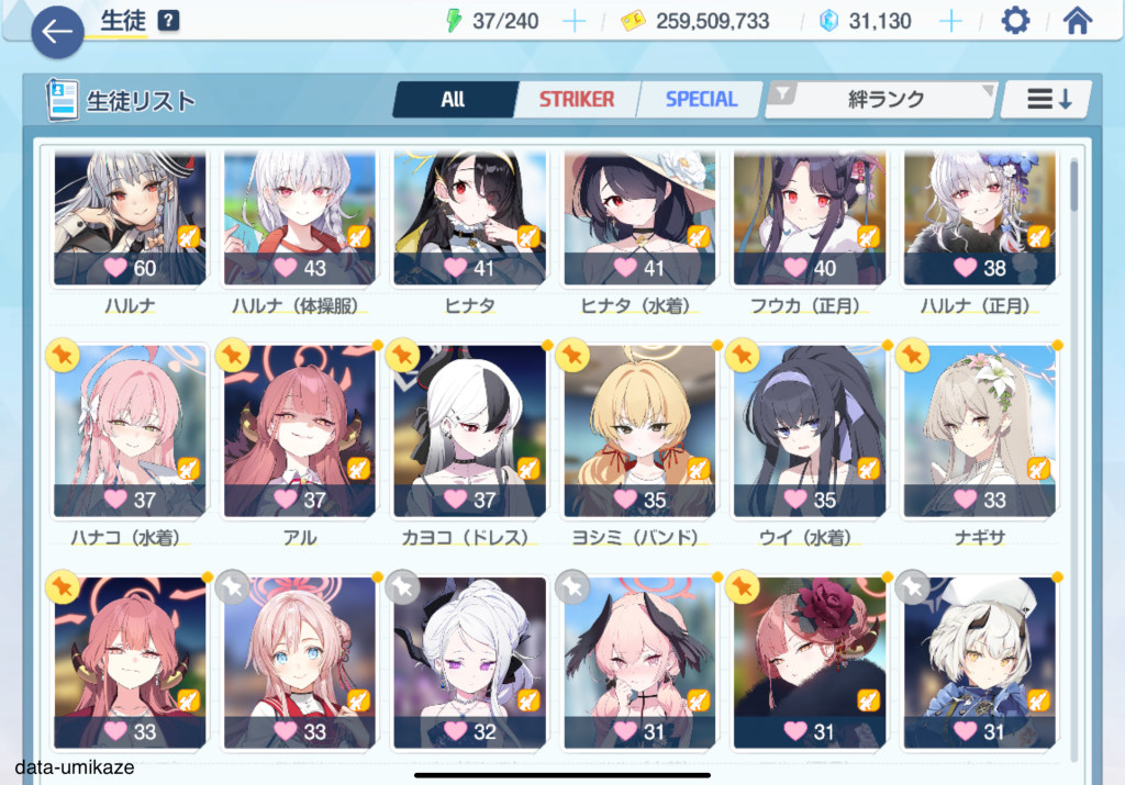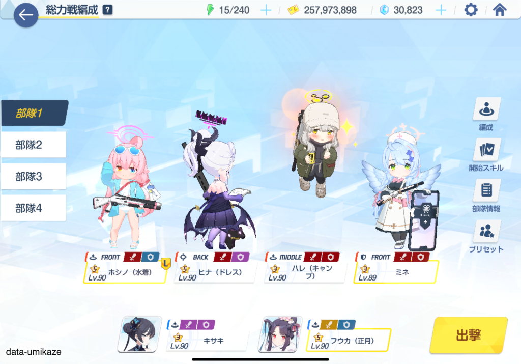 バフを乗せるまでもなく行ける難易度なら、シュンや水着シロコを採用して展開を加速させる。