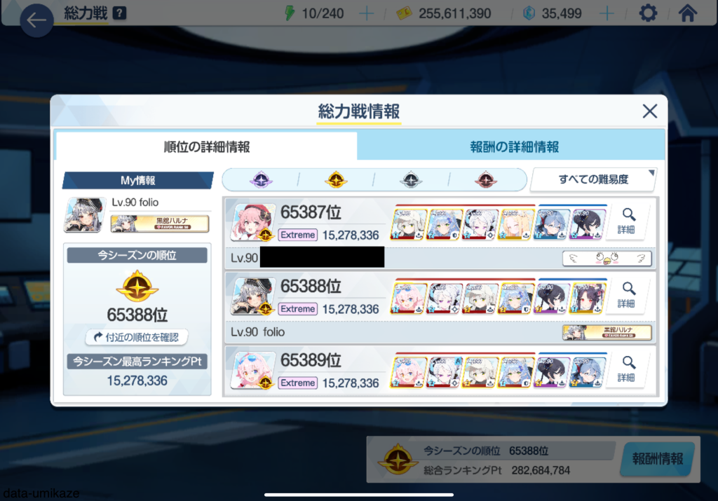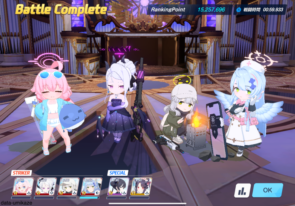今回はExtremeまでの攻略となる。前回の大決戦で使った編成を使いまわしつつ、新しく加入したキャンプハレを採用してより効率的に突破する。