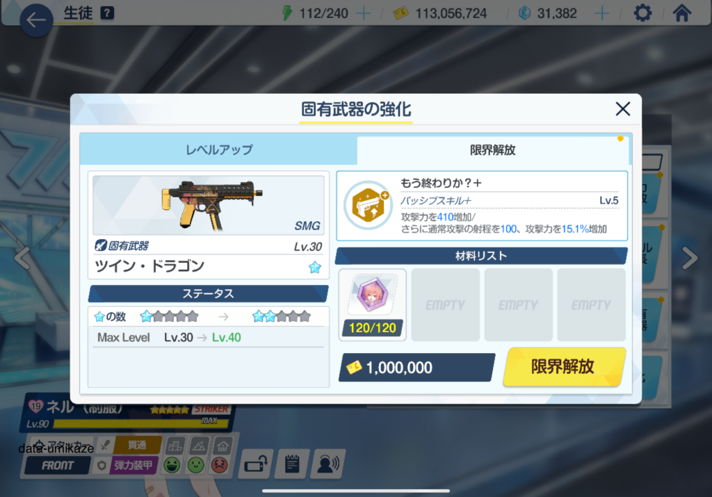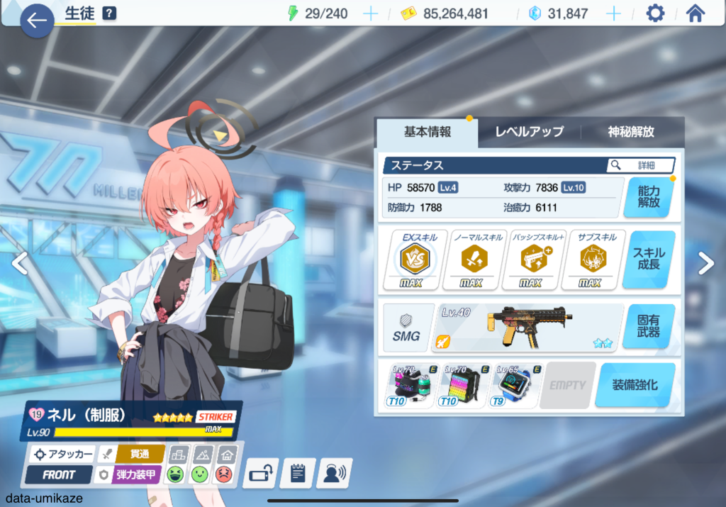 制服ネルを星3から固有2までレベルアップさせた。
