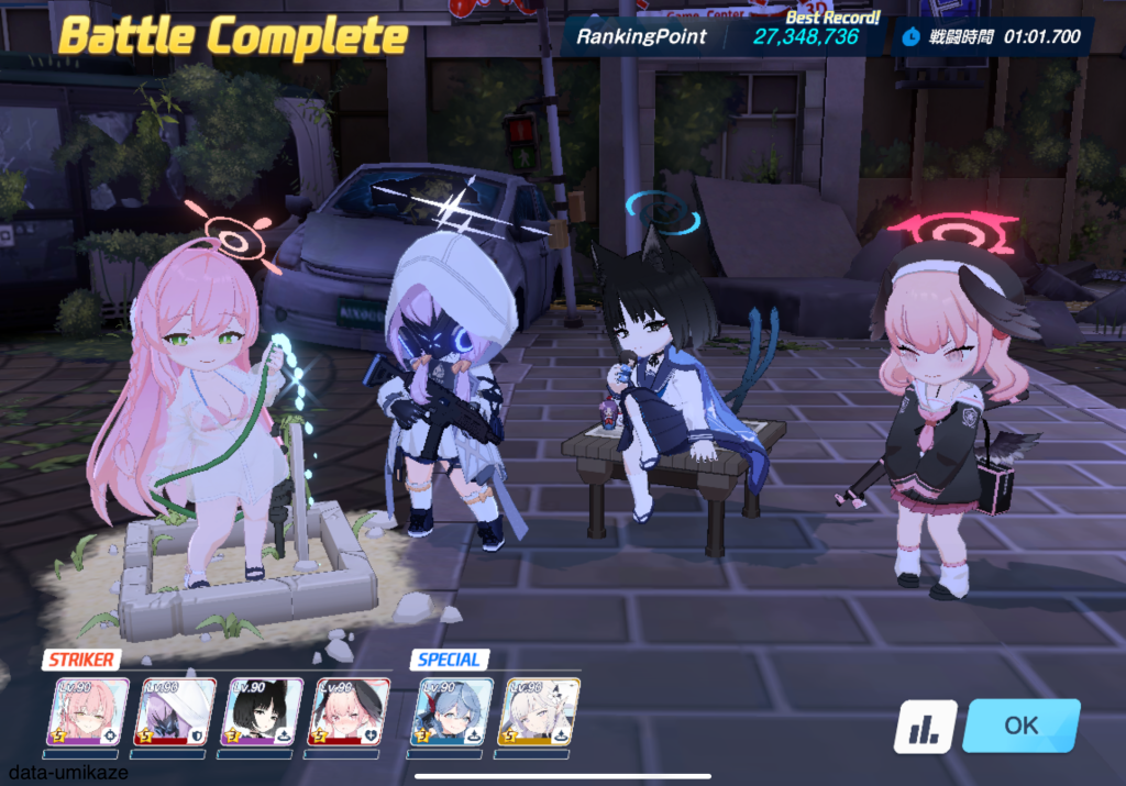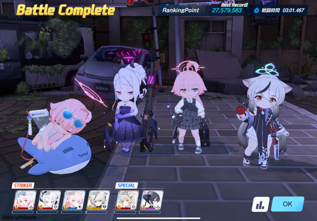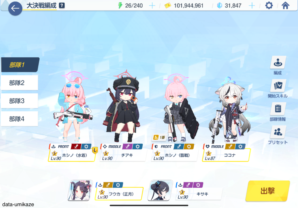 今回は市街地戦につき、ドレスヒナよりも水着ノノミの方がメインアタッカーとしての適正が高いはずだ。