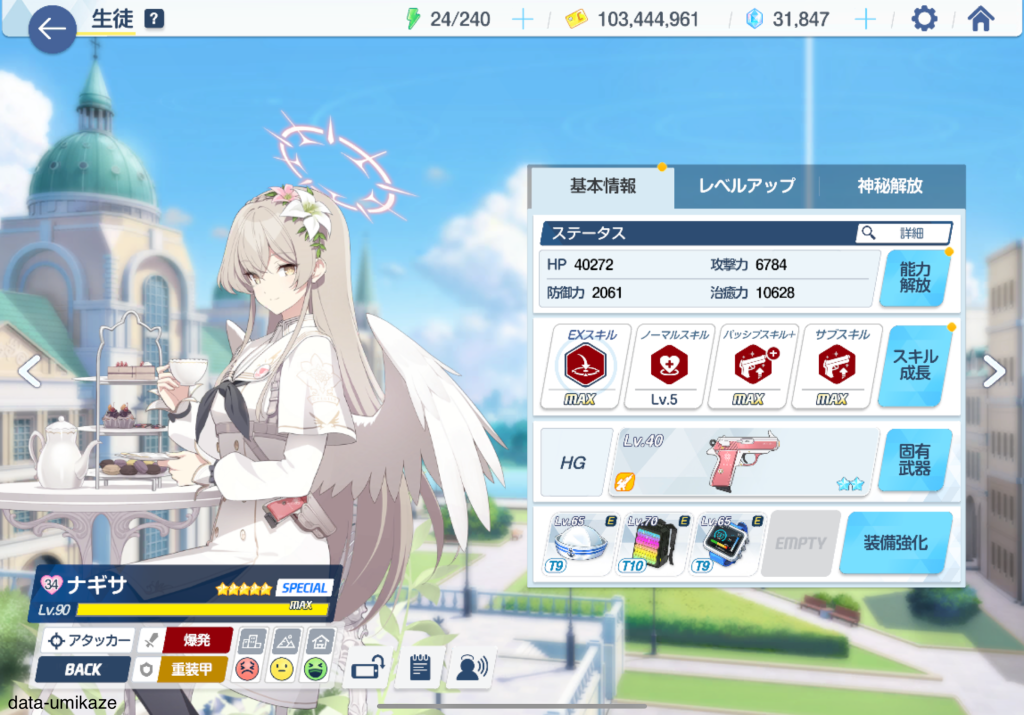 ナギサ:防御デバッファー 聖遺物:紫の破壊役 サブヒーラー