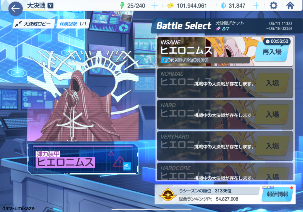 今週は1年ぶりの大決戦ヒエロニムス。総力戦も2024年の12月と結構久々の登場だ。