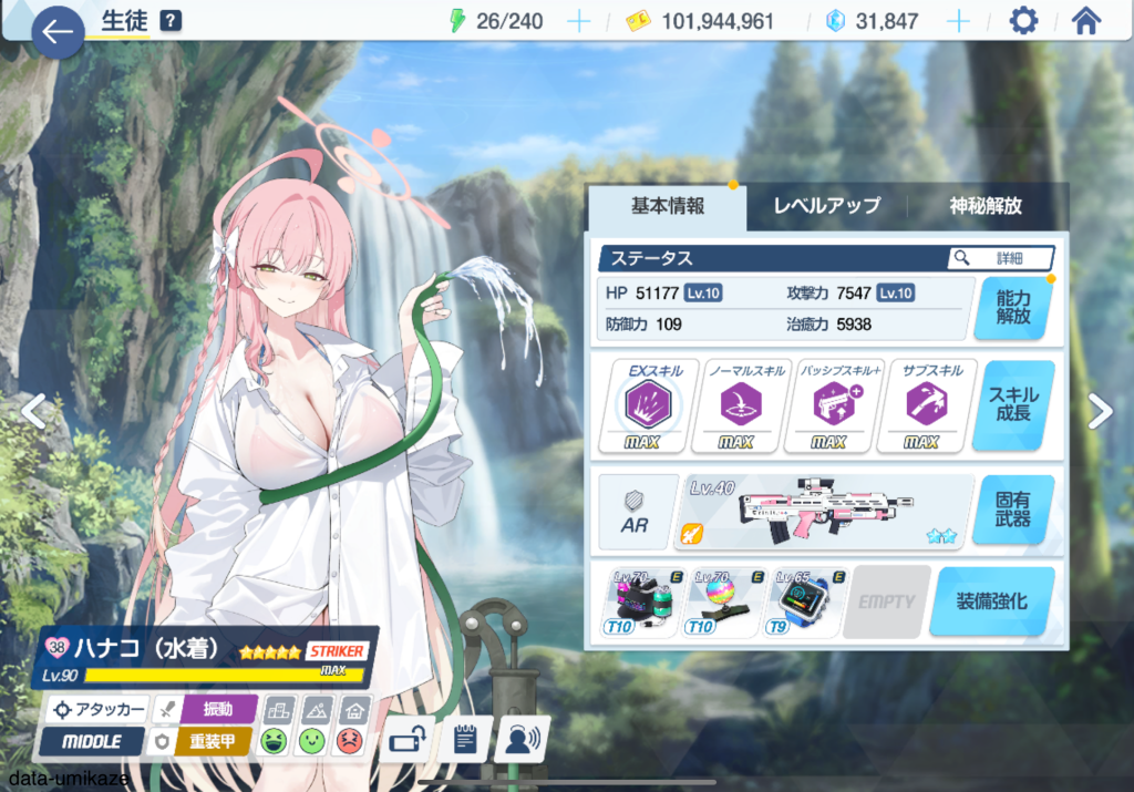 水着ハナコ:メインアタッカー 聖遺物:紫の破壊役