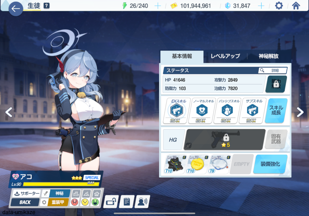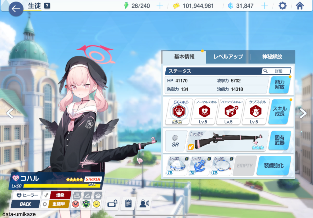 任務で使いやすい性能してるから贅沢は言いにくいけれども、そろそろ通常ハルナにも愛用品で強化がほしいところ。