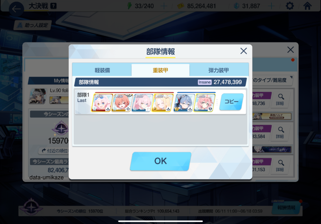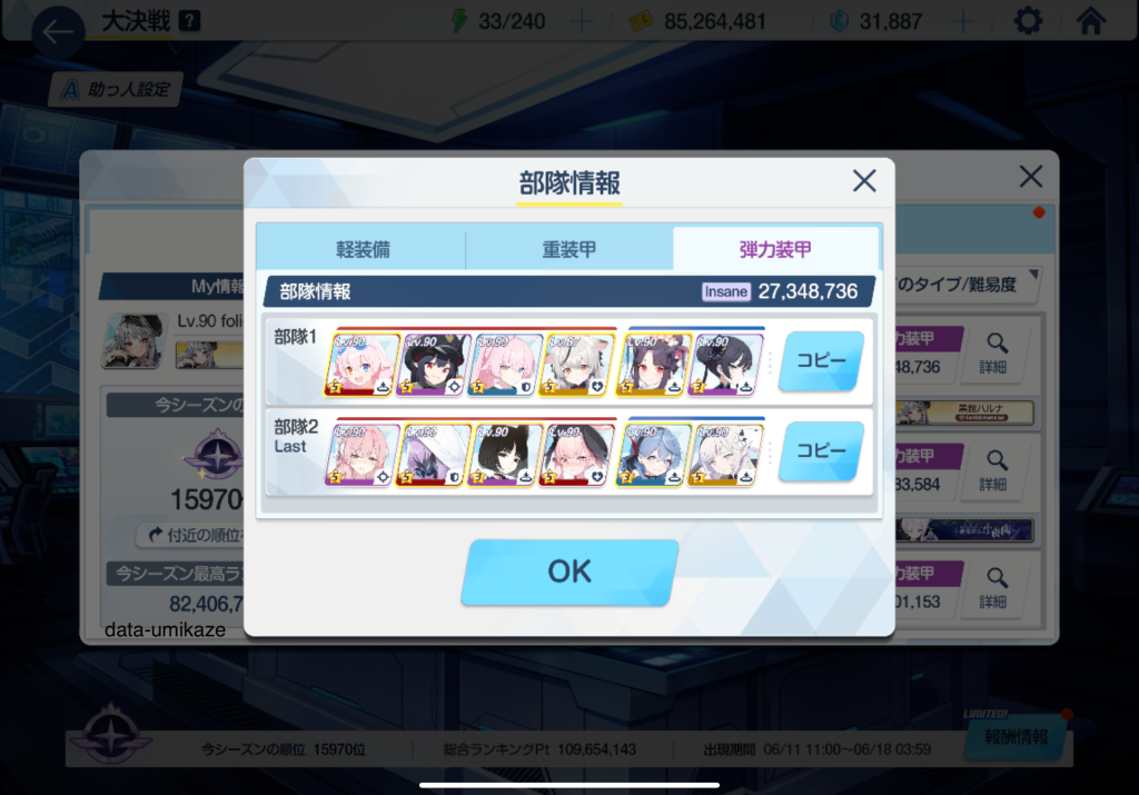 今回最も苦戦したのは弾力装甲だ。編成を色々変えてもあと一歩倒しきれない状況が続いたため、2凸で攻略する方針にシフトした。