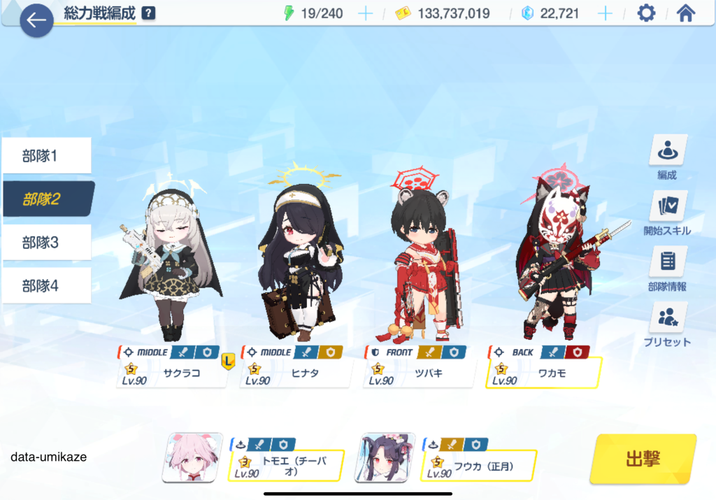 当初はワカモの枠を水着ホシノにしていたが、短期決戦という観点でこの編成となった。